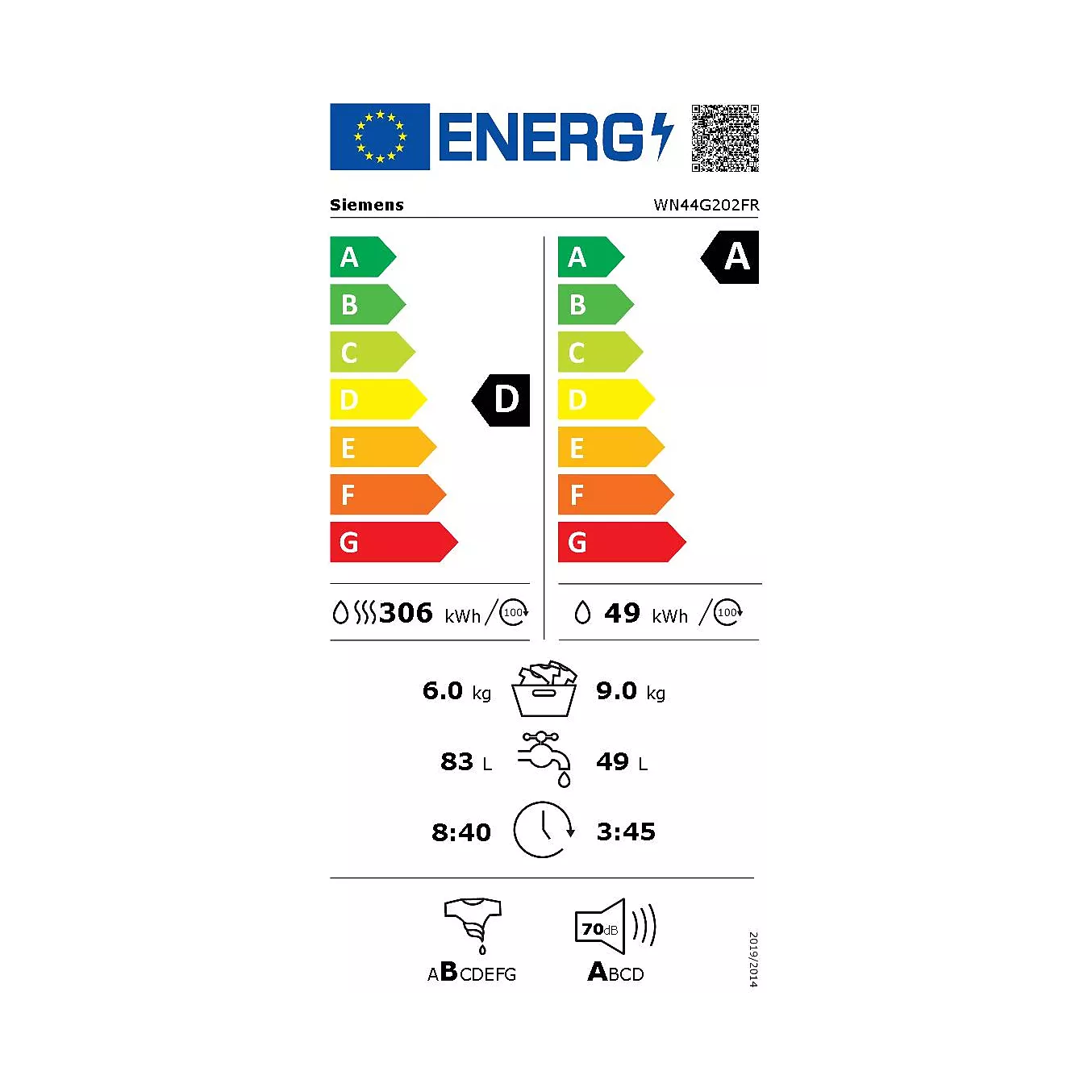• Label énergie lavage et séchage: D