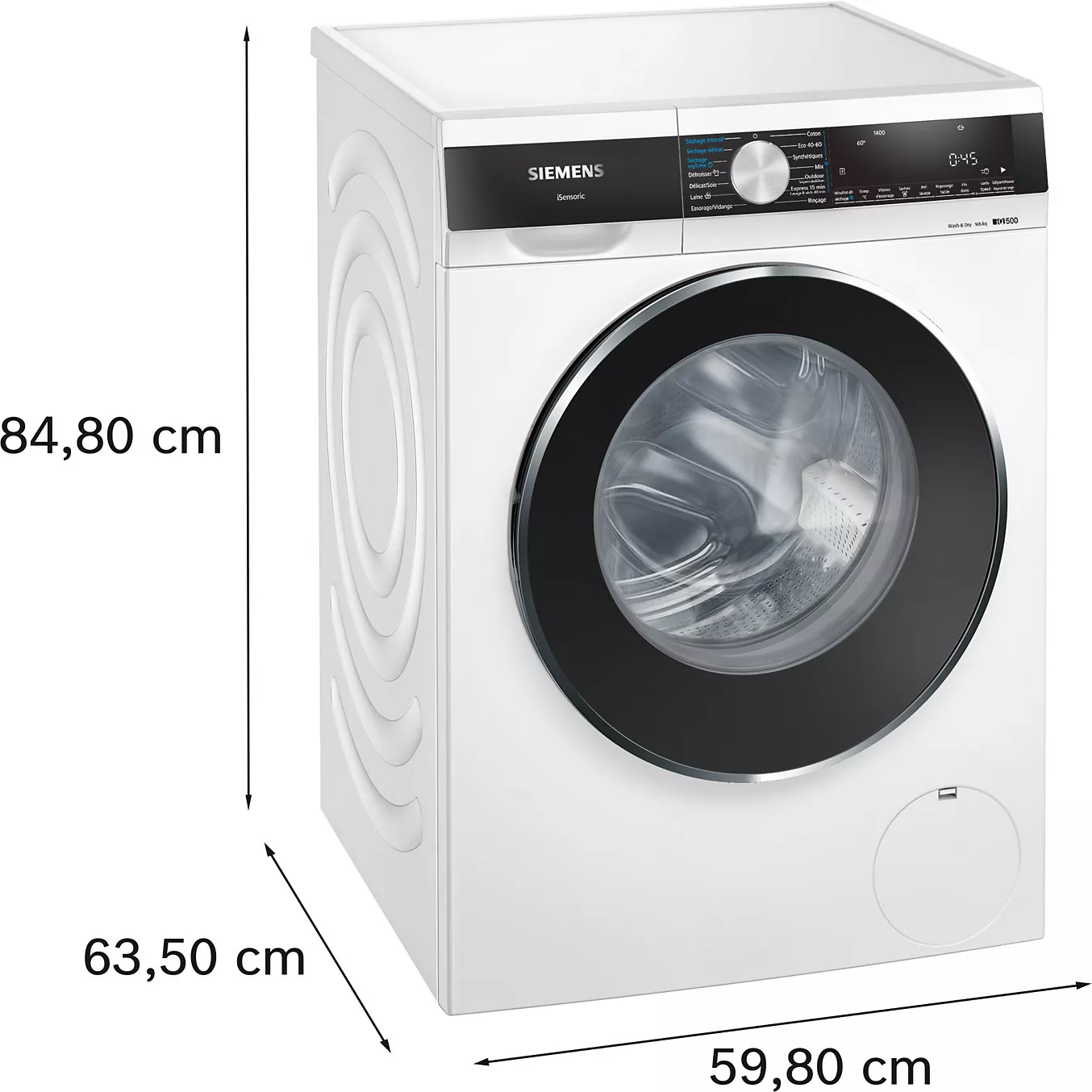 Les points forts du produit On adore: sa fonction smartFinish qui défroisse les textiles pour faciliter le repassage Capacité L (9kg) – Séchage (6Kg) L x H x P : 59.8 x 84.8 x 59 cm Essorage élevé (1400 trs) – Ultra silencieux 70dB Vapeur