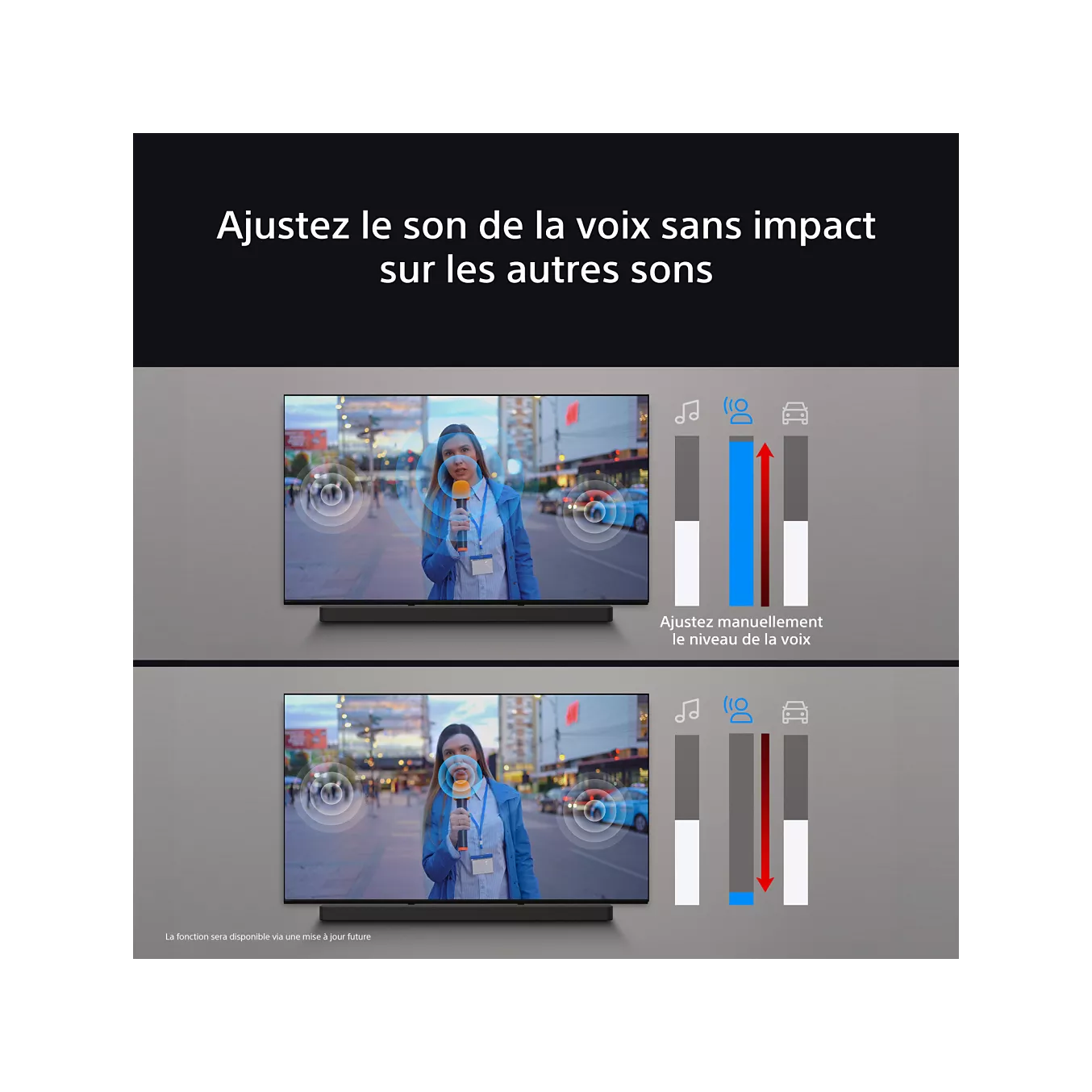 - Ajustement automatique du volume : oui, le téléviseur adapte le son en fonction de l’environnement sonore de la pièce