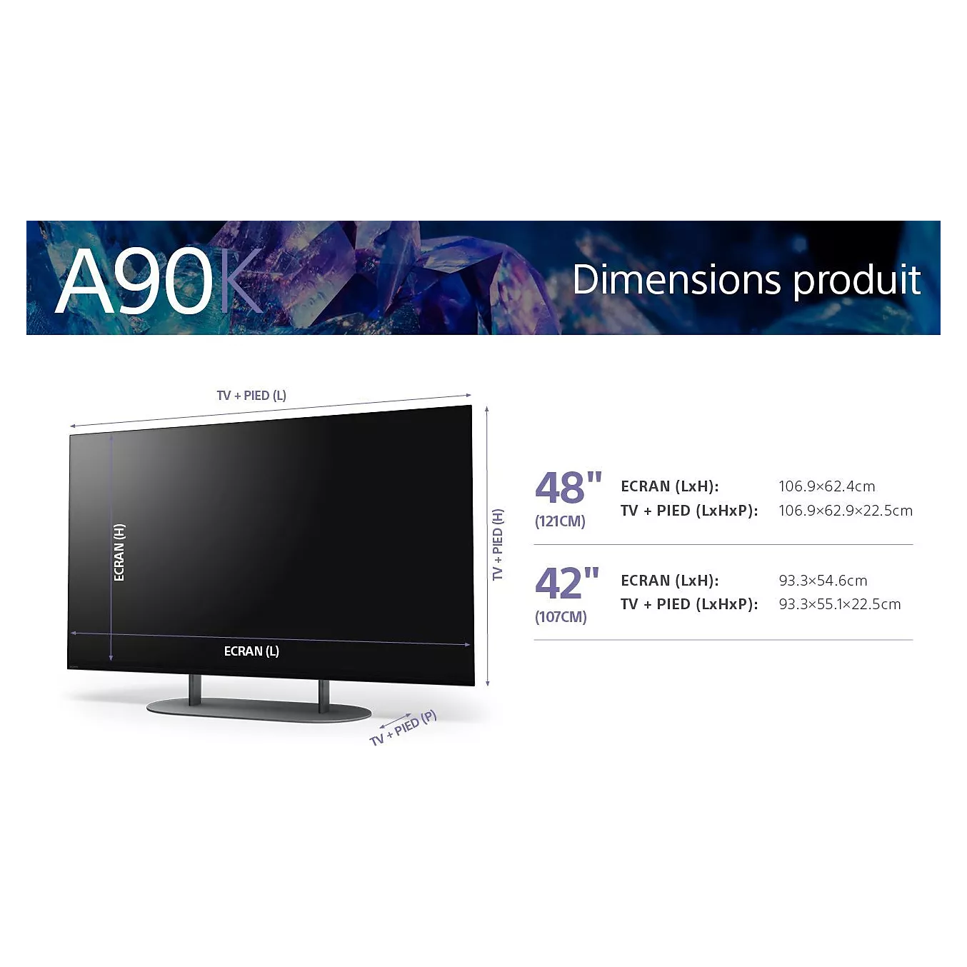 - LxHxP (avec pied)106.9 x 62.9 x 22.5 cm
